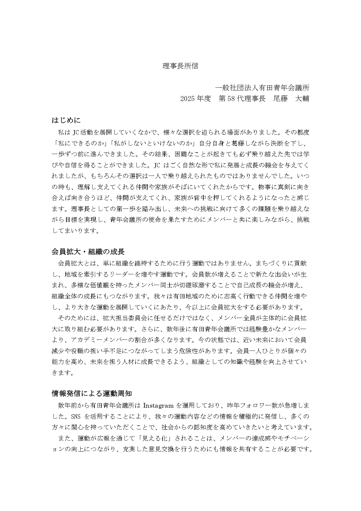 2025年度理事長
