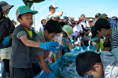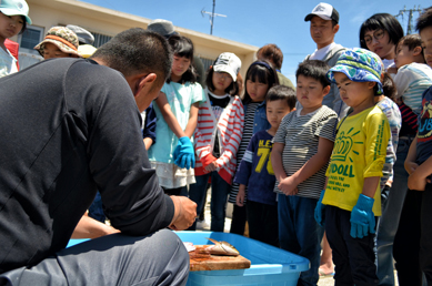 本定例会は海の教室と銘打ち、子供達に海の生き物たちと触れ合い、環境問題に学んでもらおうという趣旨のもと開催されました。