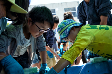 その後、しらすの中に混じって捕れる生き物たちを見つけ出すことで、多様な海の生態環境を学ぶことが出来る、