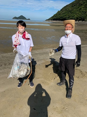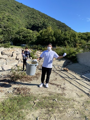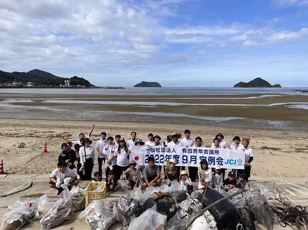 今回の例会は西広海岸にてメンバーの家族も参加して清掃活動を行いました。