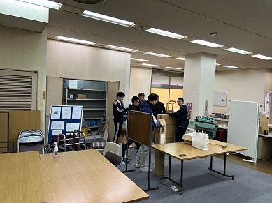旧事務局から荷物を運び出し…