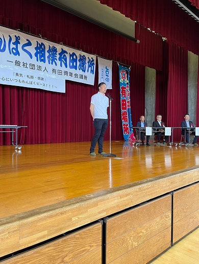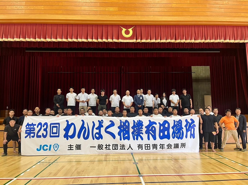 本年度も無事にわんぱく相撲を開催することが出来ました。開催にご協力頂いた関係各所の皆様に有田青年会議所一同、深く御礼申し上げます。我々の継続事業であるわんぱく相撲では、礼に始まり礼に終わるという言葉があります。有田青年会議所はこの事業で、触れ合う事の出来る場を提供し、健全な体を作り、男女ともに健やかな心や、グッドルーザー精神を育て、互いに感謝と、尊敬、思いやりの気持ちを養えるように取り組んでいきます。このわんぱく相撲を通じて参加した子どもたちが人との関わり方を知り、柔軟な考え方が養われ、人間力を高められたことを願います。