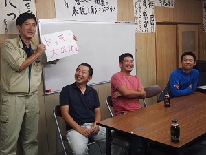 照「みんなで話すのもいいんですけど、メンバー個人個人と話したのはいい想い出ですね。で、今回7月例会でメンバーに教える立場になったのですが、自分も勉強になるけど、本当に僕でいいのかと思いました。そこで星田委員長から、照井さんに教えてもらいたいんですって言ってもらって。よし、やってやろうと思いました。でもその時思ったのが、有田JCって建設業界のメンバー多いので、DIY講座とかをすればいいのではと思いました。災害時に役立つようなこととか、日曜大工とか。それに教える立場になって気付くこともあるので。」