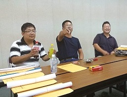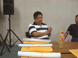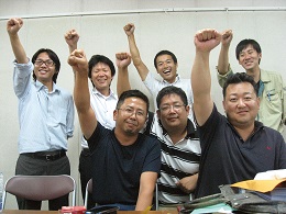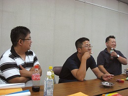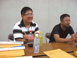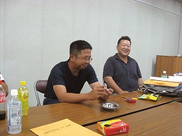 レポーターは総務委員長の佐々木君、専務理事の酒井君、事務局長の岡田君、広報担当の星田の4名です。